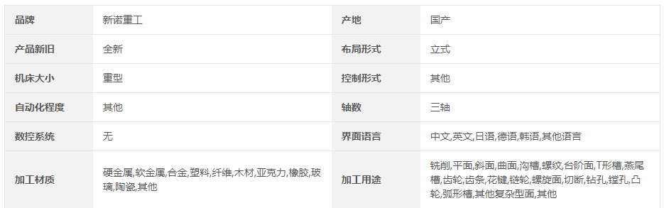 新諾精工產(chǎn)品系列:立式升降臺(tái)銑床|臥式升降臺(tái)銑床|萬(wàn)能升降臺(tái)銑床|萬(wàn)能回轉(zhuǎn)頭銑床|數(shù)控銑床|端面銑床|立式加工中心|臥式加工中心|龍門加工中心|